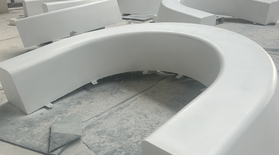 采用RHINO軟件進行參數化建模,生成流線型UHPC坐凳輪廓,單件重量僅12kg(傳統(tǒng)混凝土坐凳約35kg)。基于變密度法的拓撲優(yōu)化技術使關鍵受力部位壁厚不低于10mm,同時通過UHPC的高比強度特性(達150kN·m/kg)實現“輕量化與強度并存”。五軸加工中心雕刻高密度泡沫模具,表面粗糙度Ra≤0.8μm,確保坐凳成型后表面光滑度達到鏡面效果。