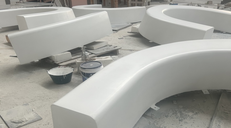 清遠生產基地配備8條自動化生產線,年產能達1.2億元,可滿足大批量定制需求。在中山幼兒園UHPC坐凳項目中,從模具開發(fā)到成品交付僅用15天,較傳統(tǒng)混凝土構件生產周期縮短60%。